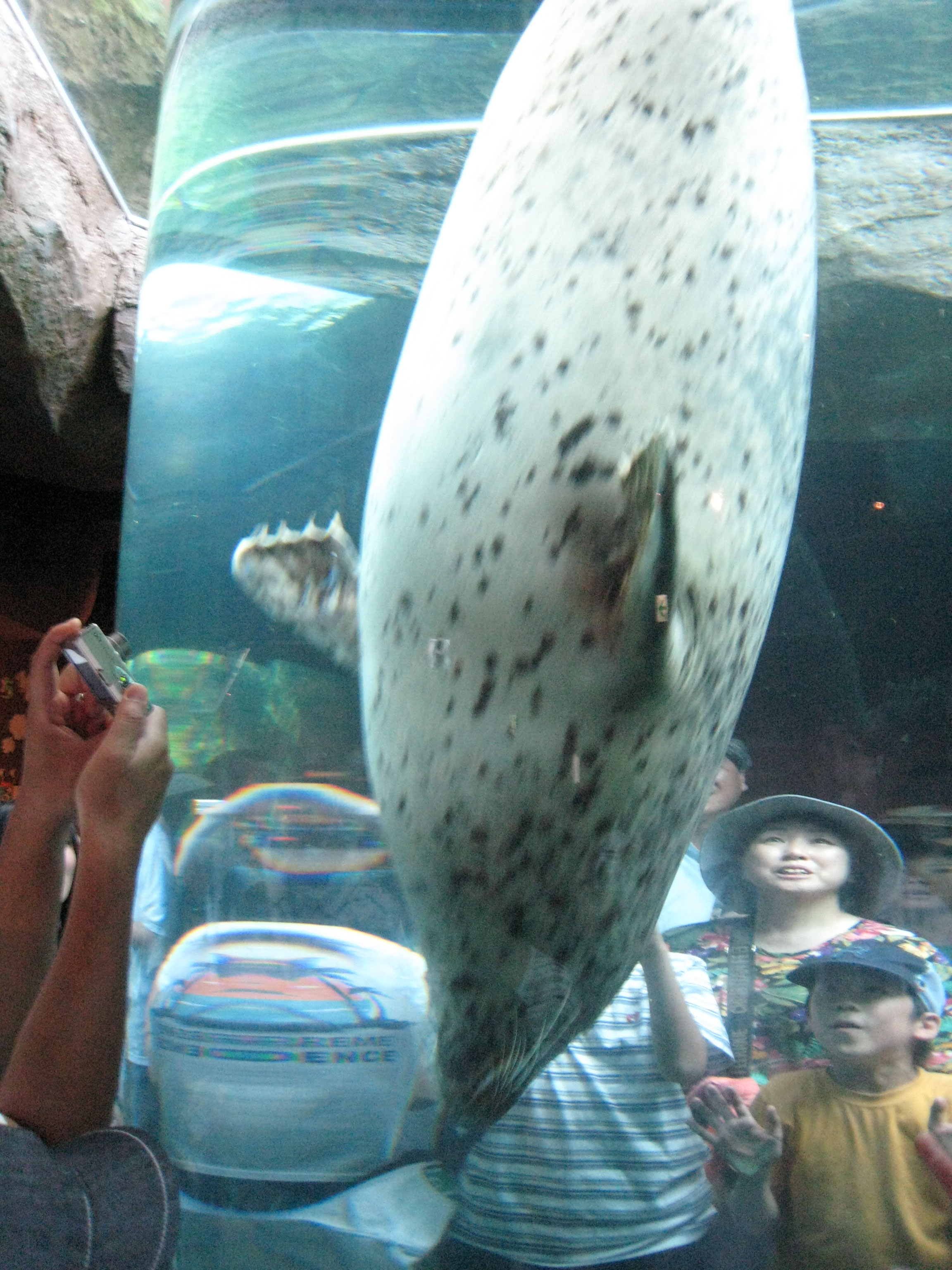 みんなが円柱水槽の周りに集まって、ぜんぜん見れなかったけど、なんとか前の方まで行けて、うまく写真を撮ることに成功。