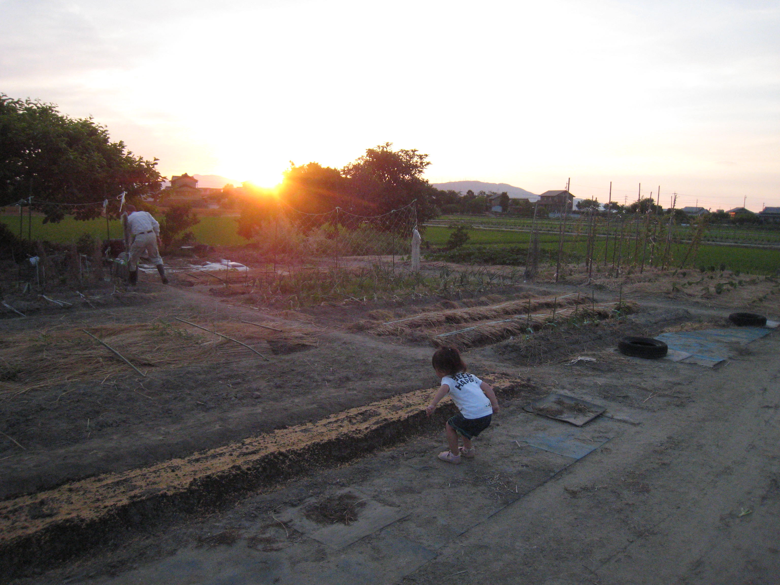夕方じいちゃん(私の父)と上の娘と近所の畑へ行くことに。