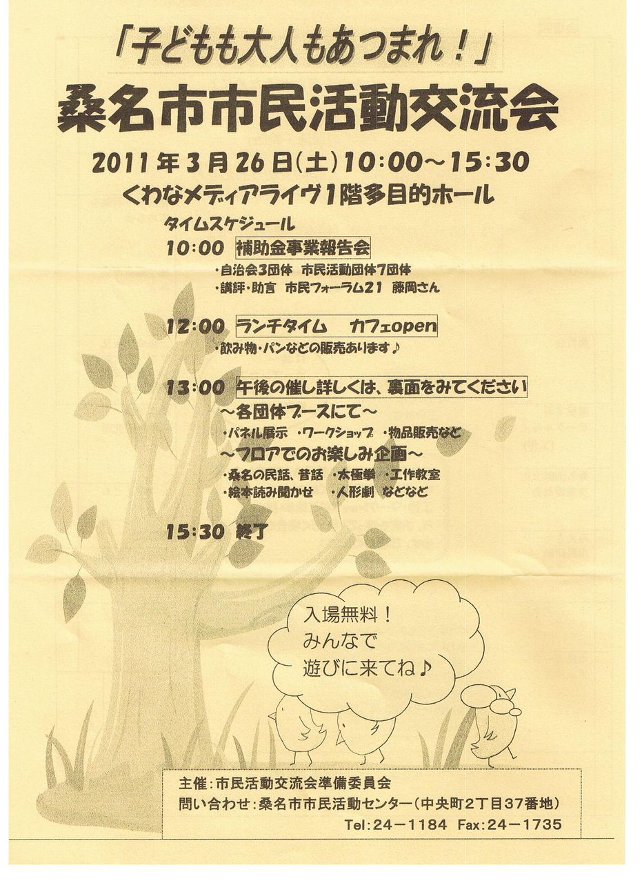 本日3月26日(土)に桑名市市民活動交流会が開催されます。